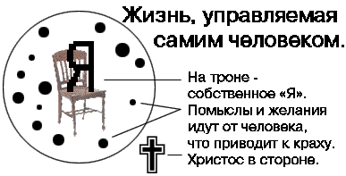 Этот рисунок показывает, что Бог свят, а человек грешен. Их разделяет огромная пропасть. Способен ли человек при желании преодолеть эту пропасть? Некоторые пытаются достичь Бога при помощи добрых дел; другие — изучением философии; третьи пытаются преодолеть эту пропасть посредством искусства и культуры. Человек пытается своими собственными силами добиться «жизни с избытком».